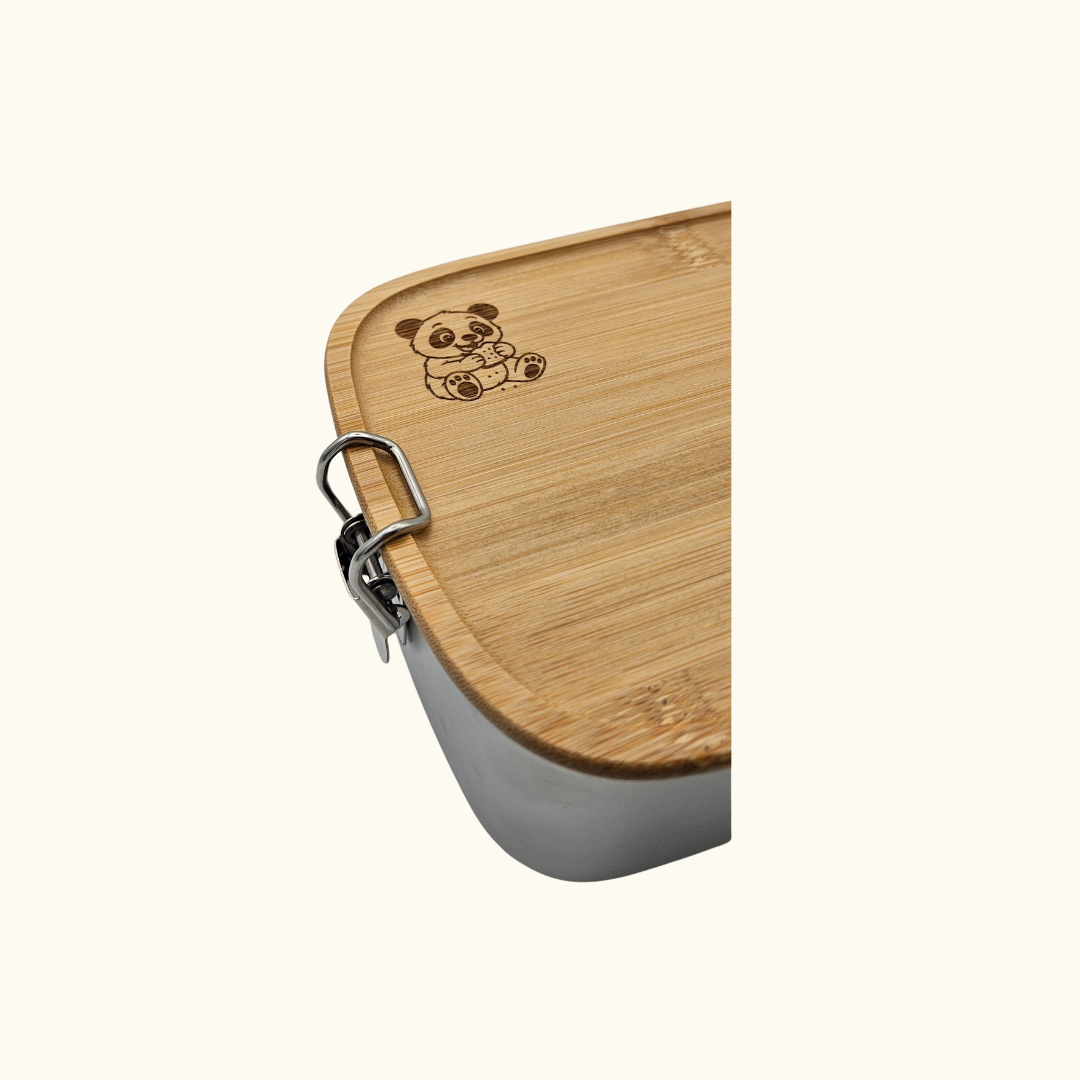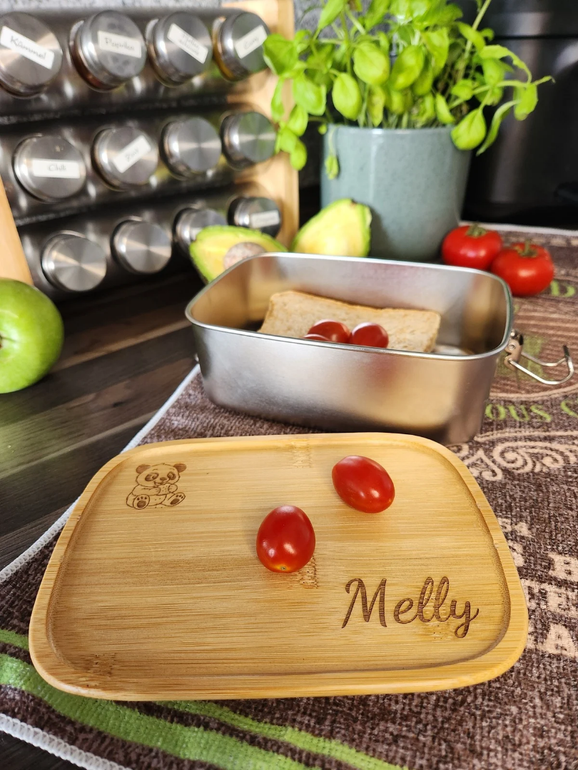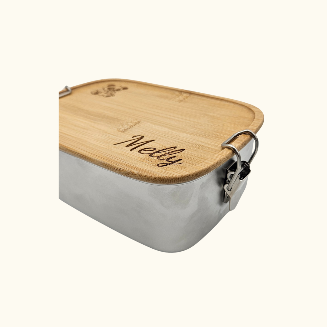 Personalisierte Brotdose aus Edelstahl mit Bambusdeckel