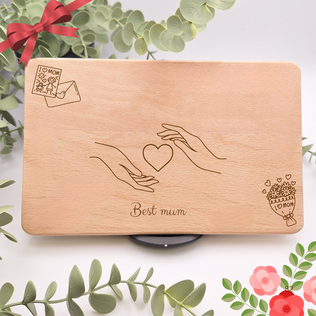 Frühstücksbrett „I love Mom / I love Mum“ – emotionales Geschenk mit Herzmotiv