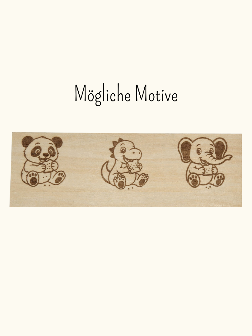 - Auswahl verschiedener Motive wie Panda, Dinosaurier, Elefanten oder nur der Name