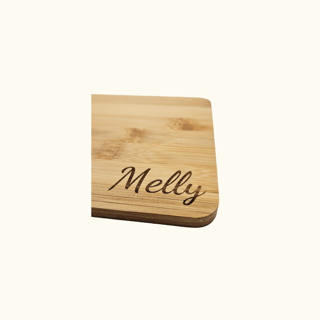 Dank der hochwertigen Lasergravur bleiben Motiv und Name dauerhaft sichtbar - keine Abnutzung, kein Verblassen. Beide Artikel sind aus nachhaltigem Bambus gefertigt, robust und pflegeleicht.