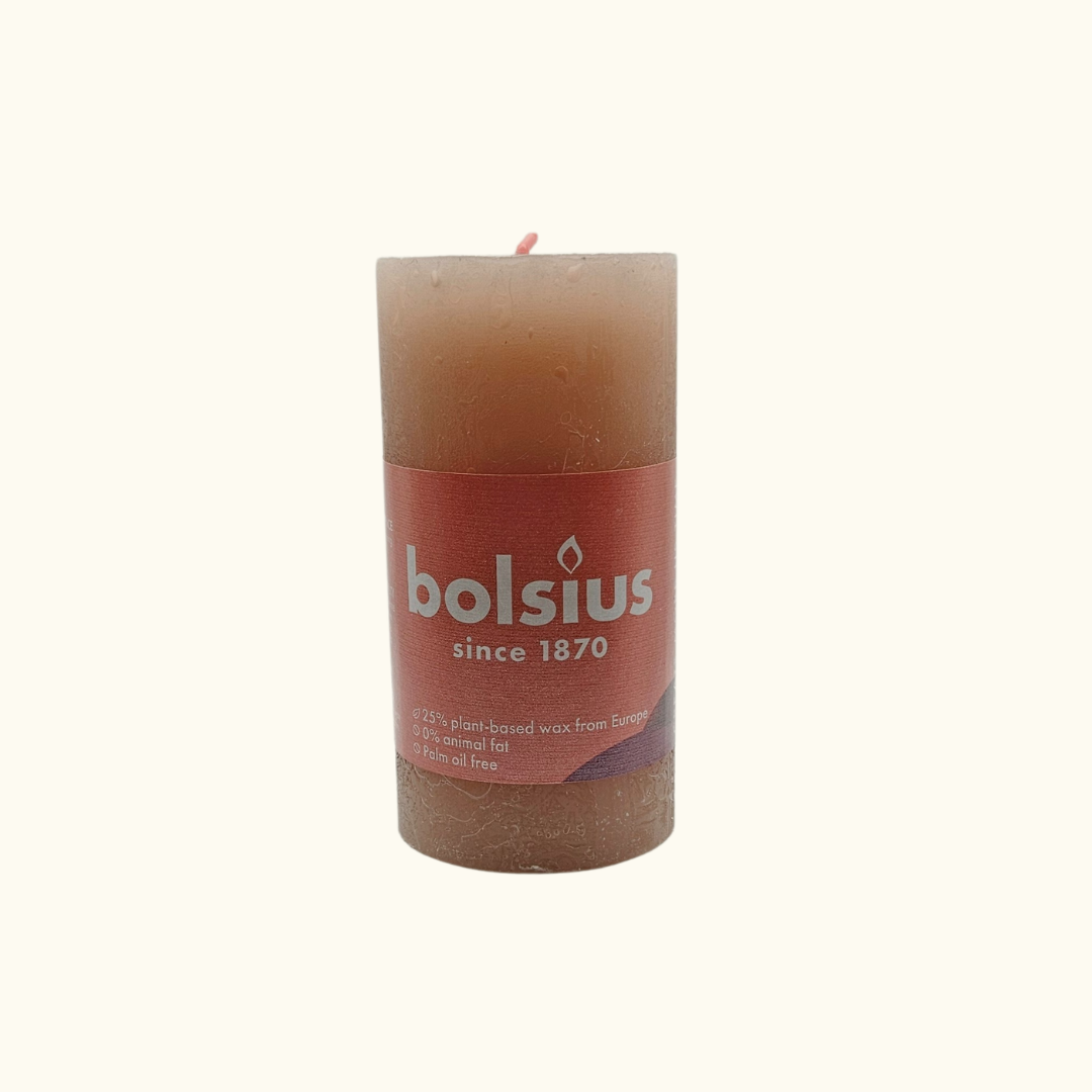 Ob einzeln dekoriert oder zusammen mit anderen Farben und Größen - die Bolsius Stumpenkerze in Nebligem Rosa bringt Charme und Eleganz in jeden Raum.